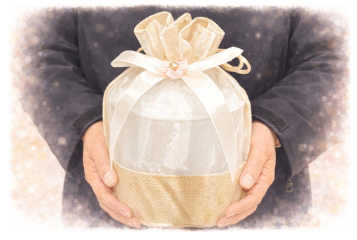 お骨を骨壷に入れ骨袋にお納めしご返骨いたします。